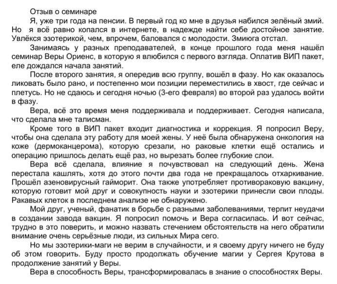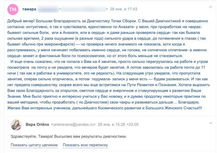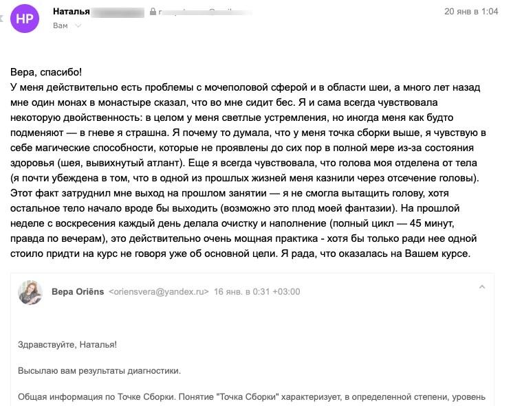 Отзыв Анны Носко об обучении на курсе "Выходы из тела":