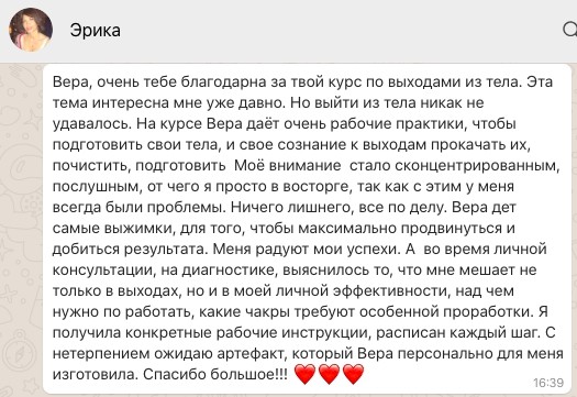 Отзыв Елены Боровской об обучении на курсе "Выходы из тела":